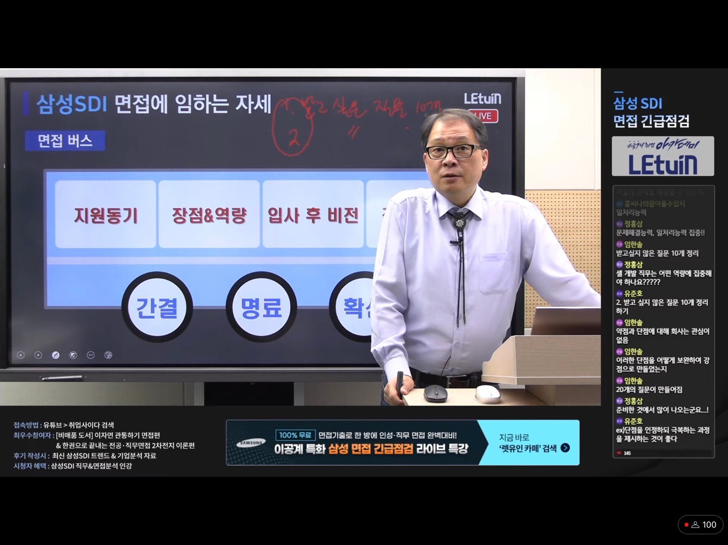 ★무료 라이브 취업특강 - 삼성SDI 면접기출 & 모범답변 긴급점검 후기★ + 면접관의 의도파악+설득