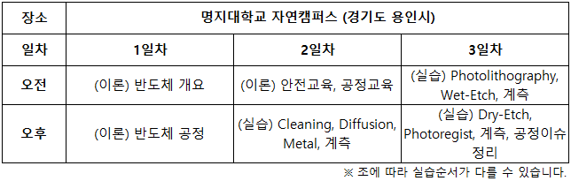 2일간 반도체 공정 전체를 아우르며 이론을 배운 덕에 실습에 나갔을 때 각 장비와 공정에 대한 이해도가 더욱 높았습니다 |