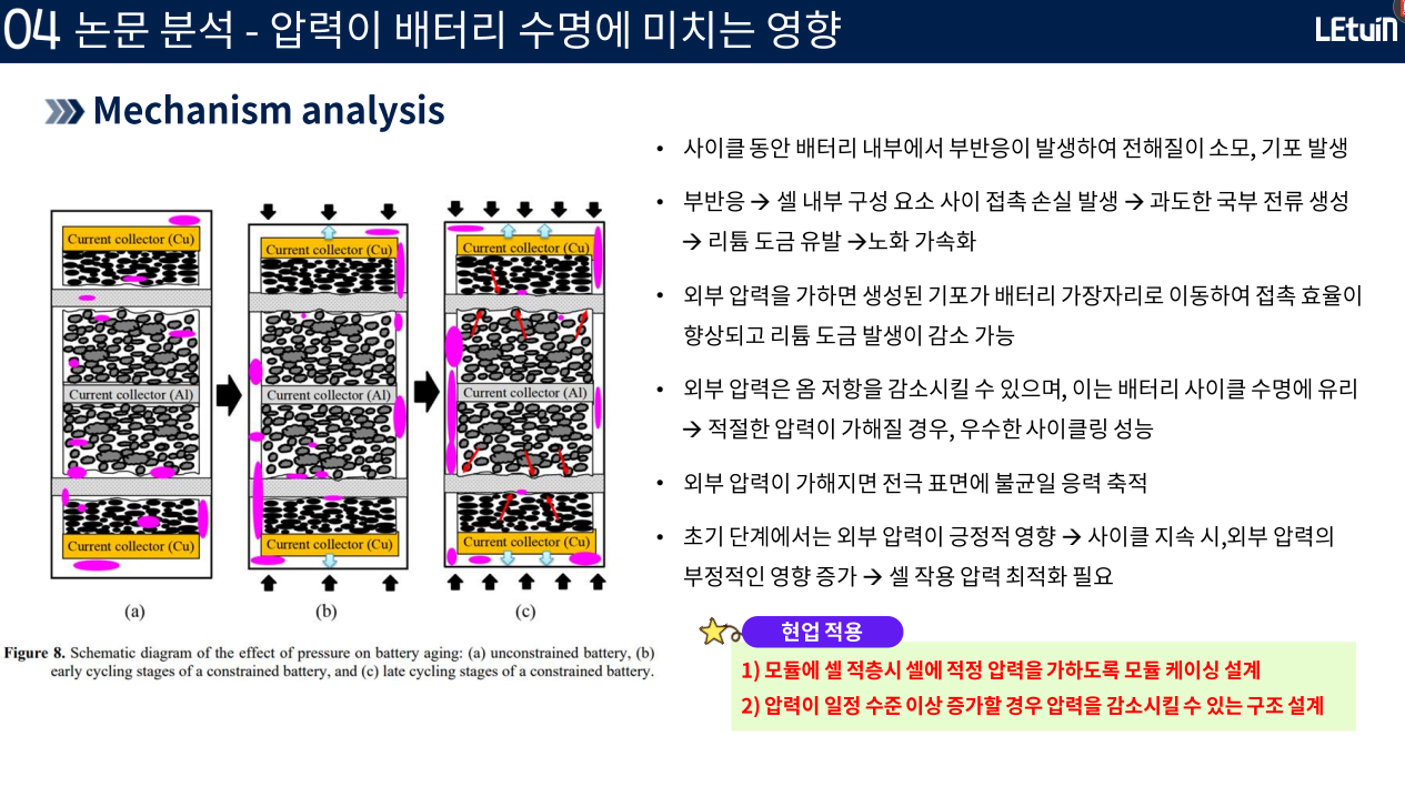 나아가 배터리 기계 및 압력 영향 현상 관련 영문 논문을 선정하여 개별 분석 및 연구 논문 포트폴리오를 작성하게 됩니다.