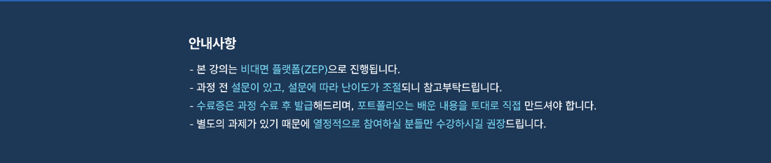 복잡하거나 어려운 사전 지식이 없어도 충분히 수강하실 수 있으며